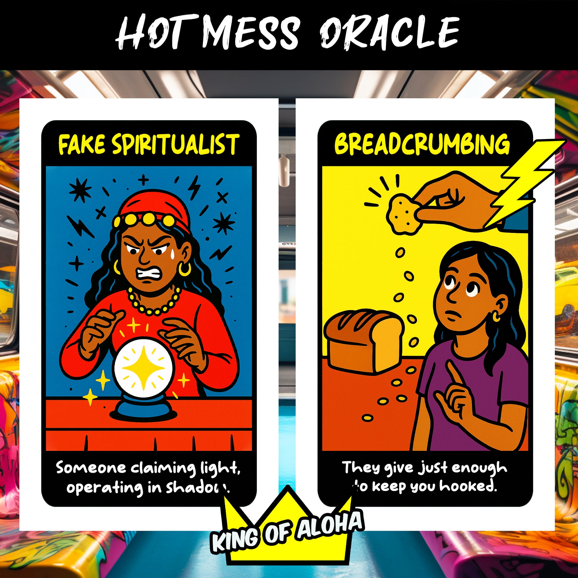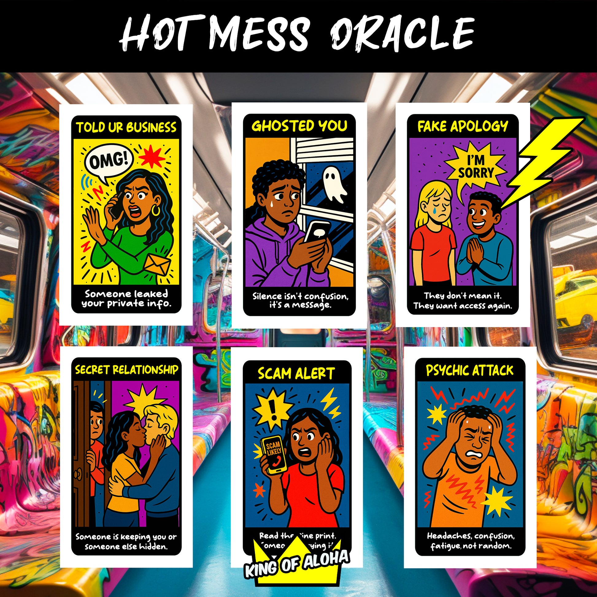 Welcome to The Hot Mess Oracle — where we don’t sugarcoat a damn thing. This deck is your go-to spiritual GPS when life starts spiraling, people act fake, and energy gets weird. With 120 no-nonsense cards, you’ll get clear answers about what’s really happening around you — from shady friends to karmic lovers, spiritual attacks to workplace drama.